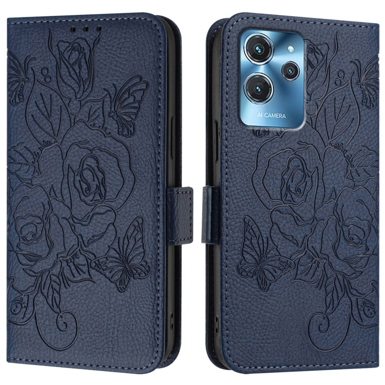 Funda de Cuero Antirrobo RFID para Oukitel C32 con Relieve Rosa (Azul Oscuro)