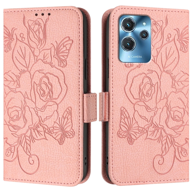 Funda de Cuero Antirrobo RFID para Oukitel C32 con Relieve (Rosa)