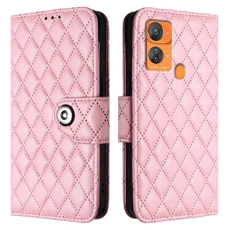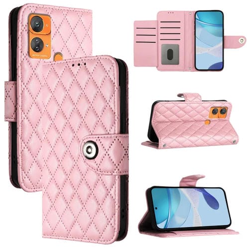Funda para Teléfono Oukitel C33 con Tapa de Cuero, Textura Rómbica y Cordón (Rosa)