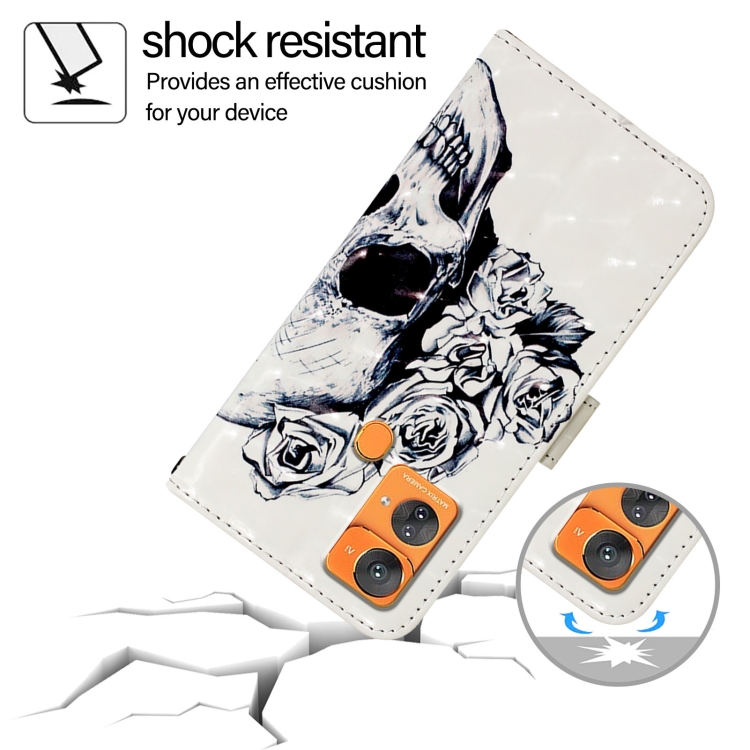 Funda para Oukitel C33 de Cuero con Tapa Horizontal y Pintura 3D (Calavera)