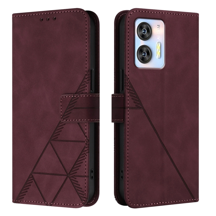 Funda de Cuero para Oukitel C35 y C36 con Tapa en Relieve 3D Crossbody (Rojo Vino)