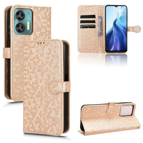 Funda de Cuero para Oukitel C35 Honeycomb Dot Texture para Teléfono (Dorado)