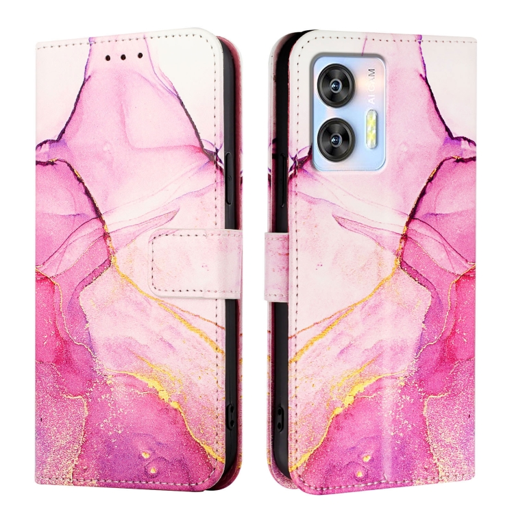 Funda de Cuero con Tapa para Oukitel C36 / C35 Pt003 con Patrón de Mármol (Rosa, Morado y Dorado)