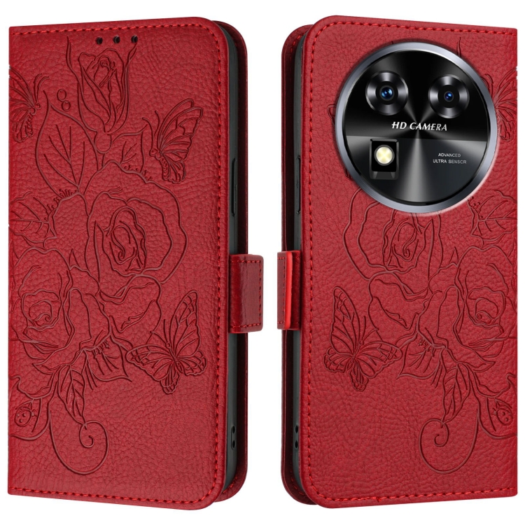 Funda para Oukitel C37 de Cuero Antirrobo RFID con Rosa en Relieve (Rojo)