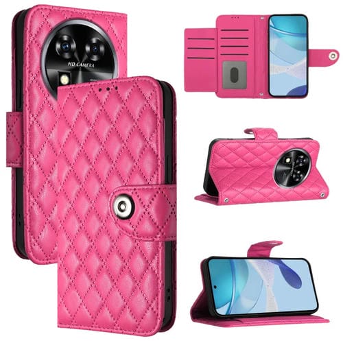 Funda para Oukitel C37 de Cuero con Tapa, Textura Rómbica y Cordón (Rojo Rosa)