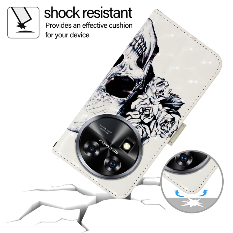 Funda para Oukitel C37 de Cuero con Tapa Horizontal y Pintura 3D Calavera