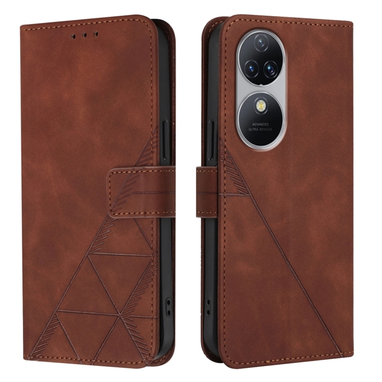Funda para Oukitel C38 Crossbody de Cuero con Tapa en Relieve 3D (Marrón)