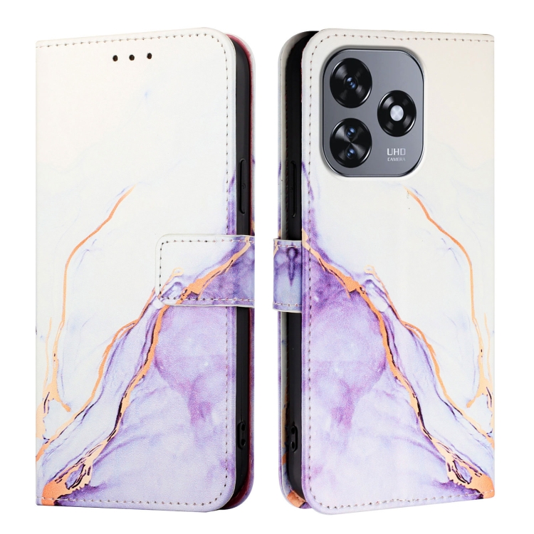 Funda de Cuero para Oukitel C51 Pt003 con Tapa y Patrón de Mármol (Blanco y Morado)