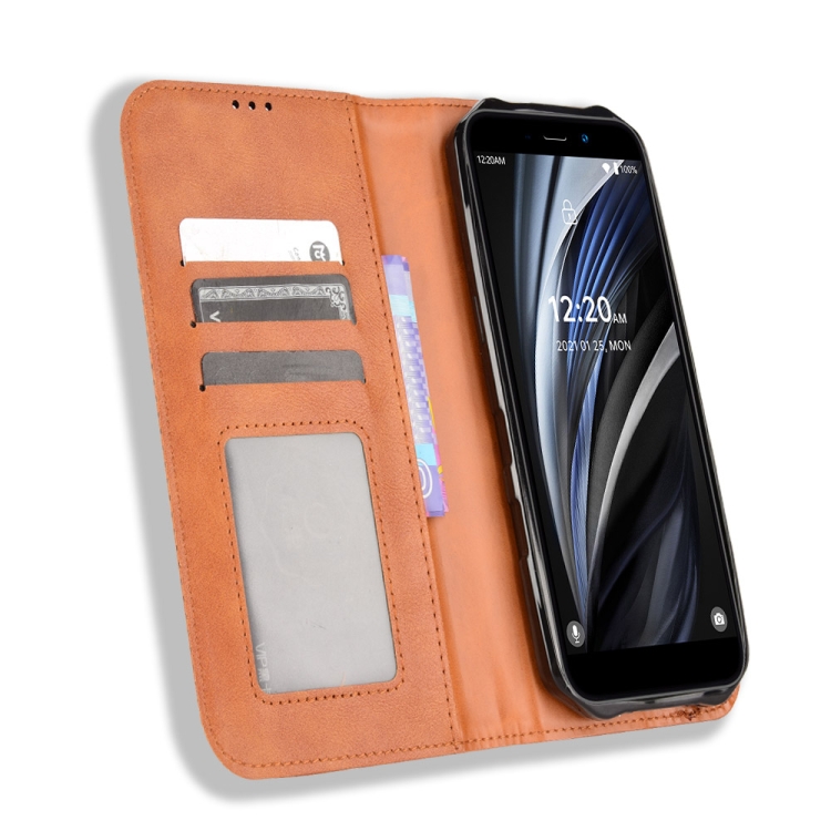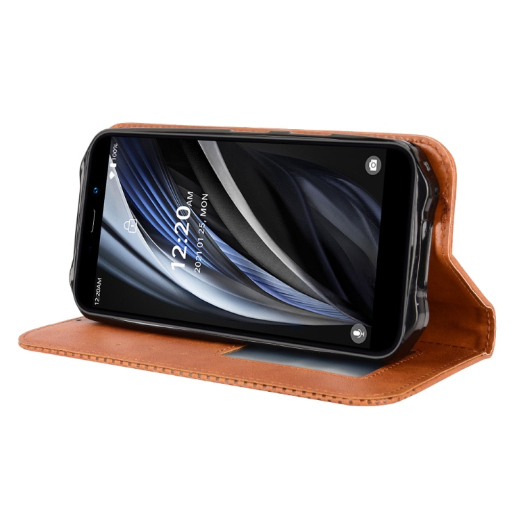 Funda de Cuero para Oukitel Wp12 y Wp12 Pro con Hebilla Magnética y Textura Retro (Marrón)