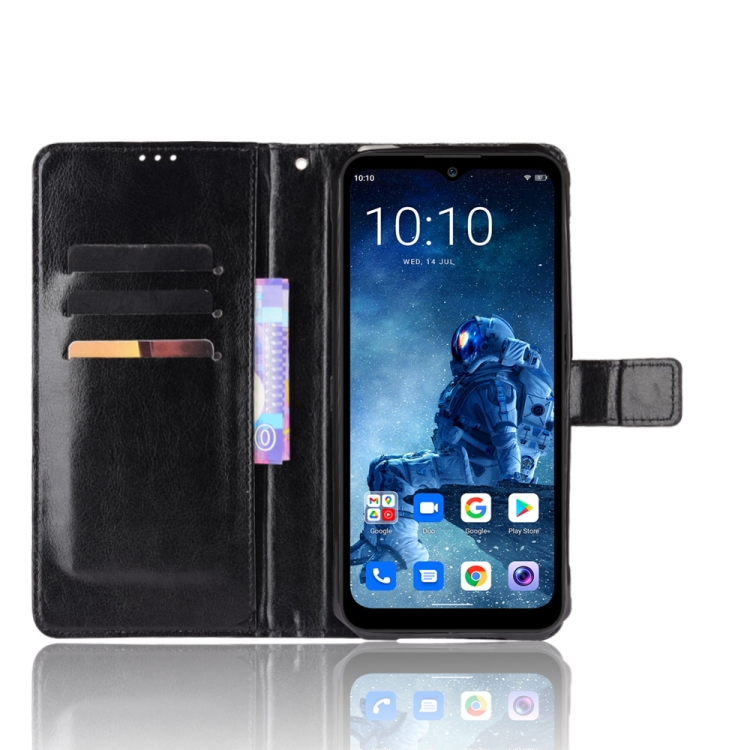 Funda de Cuero Oukitel Wp13 5G Crazy Horse Textura Horizontal con Soporte, Ranuras y Cordón (Negro)