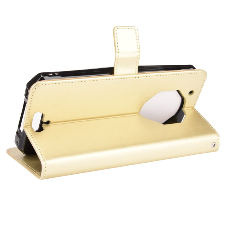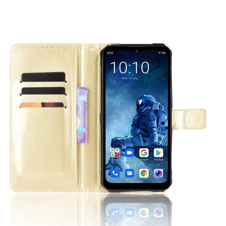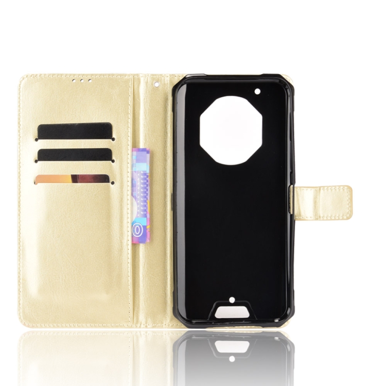 Funda de Cuero para Oukitel Wp13 5G Crazy Horse Textura con Soporte, Ranuras y Cordón (Oro)