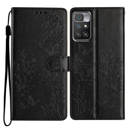 Para Redmi 10 2022 Funda de Cuero para Teléfono con Mariposas y Flores (Negro)