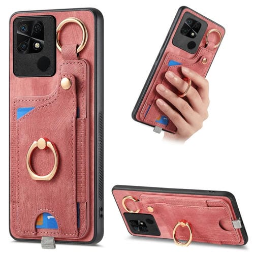 Para Redmi 10C Funda para Teléfono con Bolsa para Tarjeta con Anillo y Sensación de Piel Retro con Lazo para Colgar (Rosa)
