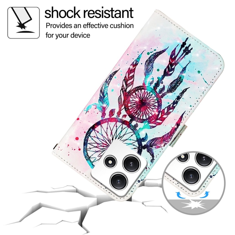 Para Redmi 12 4G / 5G Global India / Note 12R Funda para Teléfono de Cuero con Tapa Horizontal con Pintura 3D (Campanas de Viento con Forma de Gota de Color)