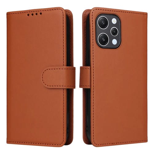 Para Redmi 12 4G Betopnice Bn-005 2 En 1 Funda de Teléfono de Cuero Genuino Desmontable (Marrón)