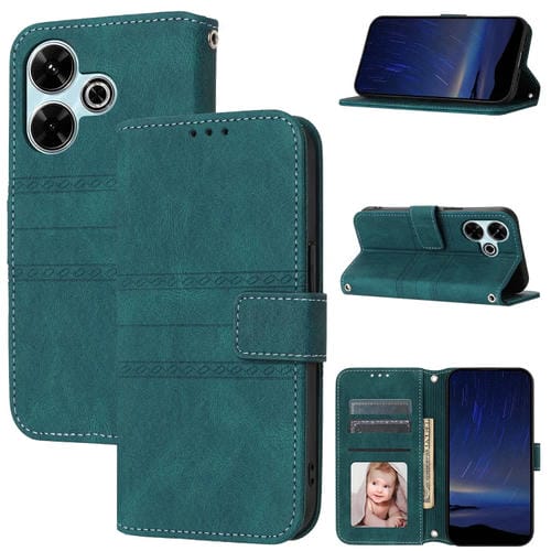 Para Redmi 13 4G Funda de Cuero con Sensación de Piel y Rayas En Relieve (Verde Oscuro)