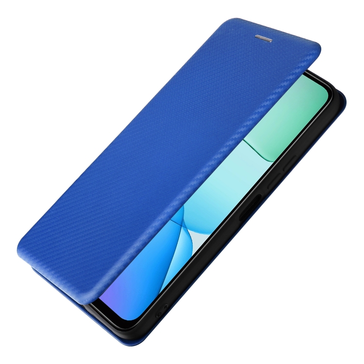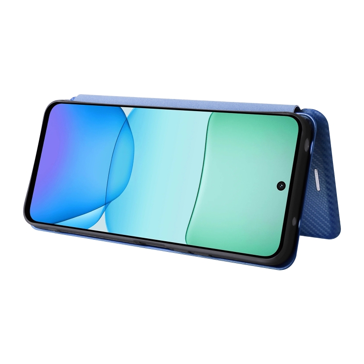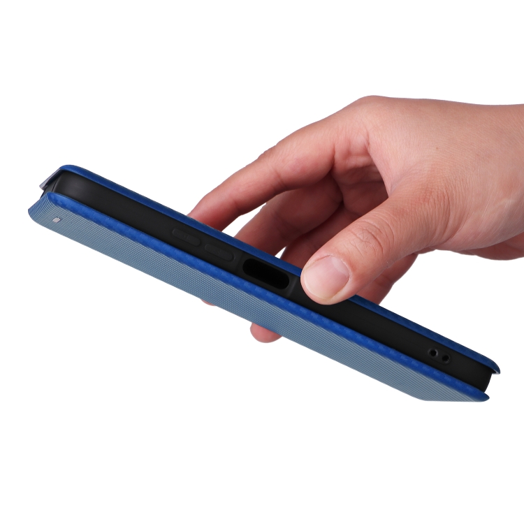 Para Redmi 13 4G Funda de Cuero con Tapa con Textura de Fibra de Carbono (Azul)