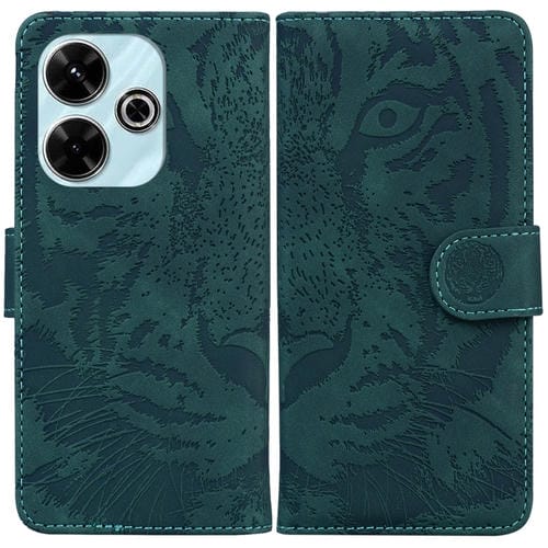 Para Redmi 13 4G Tiger Embossed Pattern Funda de Cuero con Tapa para Teléfono (Verde)