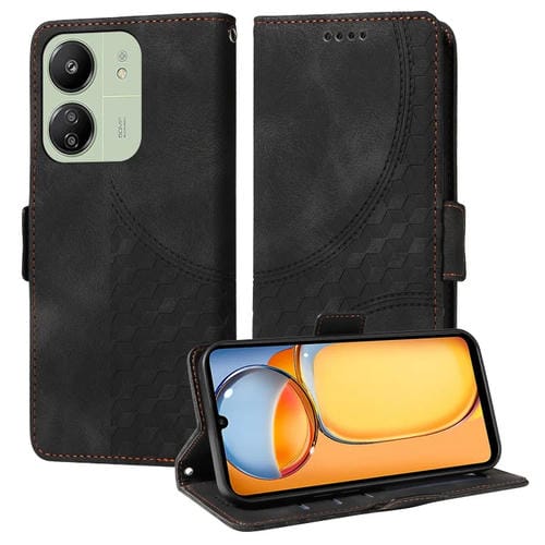 Para Redmi 13C 4G / 5G / 13R Funda para Teléfono de Cuero Estrellado con Rombos En Relieve (Negro)