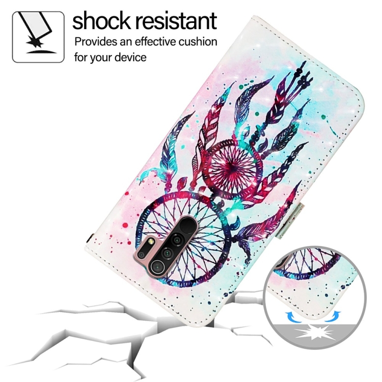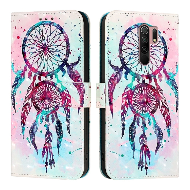 Para Redmi 9/9 Prime India Funda para Teléfono de Cuero con Tapa Horizontal con Pintura 3D (Campanas de Viento con Forma de Gota de Color)