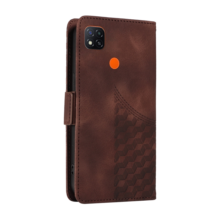 Para Redmi 9C / 9 India Funda para Teléfono de Cuero Estrellado con Rombos En Relieve (Marrón)
