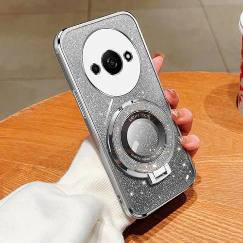 Para Redmi A3 Estuche para Teléfono de TPU con Soporte Redondo y Brillo Degradado Plateado (Plata)