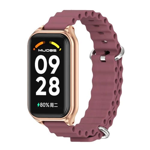 For Redmi Band 2 Mijobs Metal Shell Ocean Silicone Watch Band (Wine Red Rose Gold)