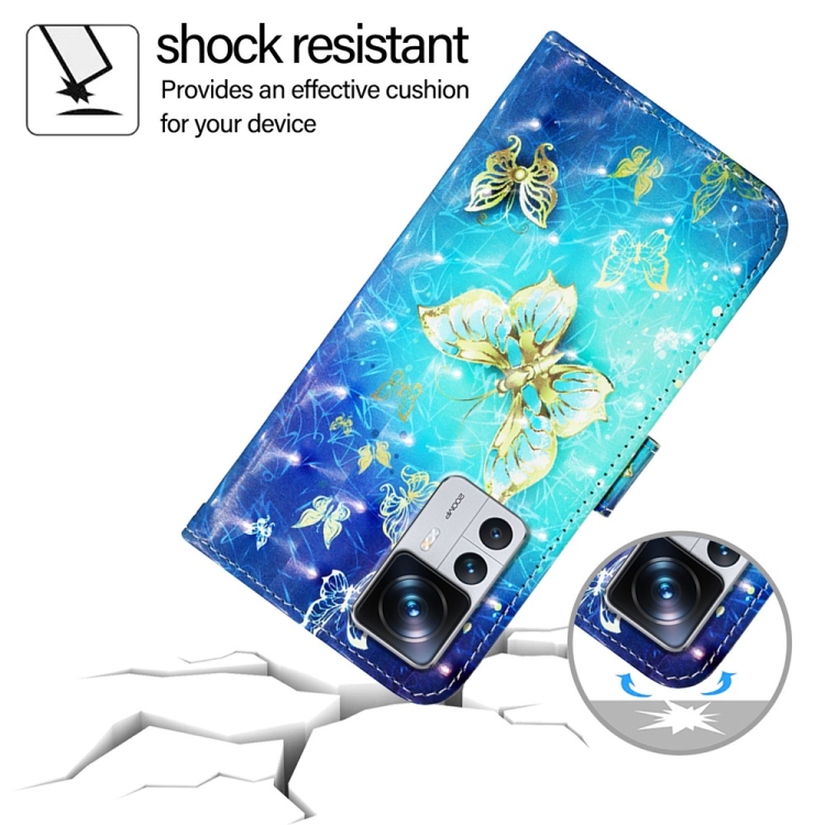 Para Redmi K50 Ultra / Xiaomi 12T / 12T Pro Funda para Teléfono de Cuero con Tapa Horizontal con Pintura 3D (Mariposa Dorada)
