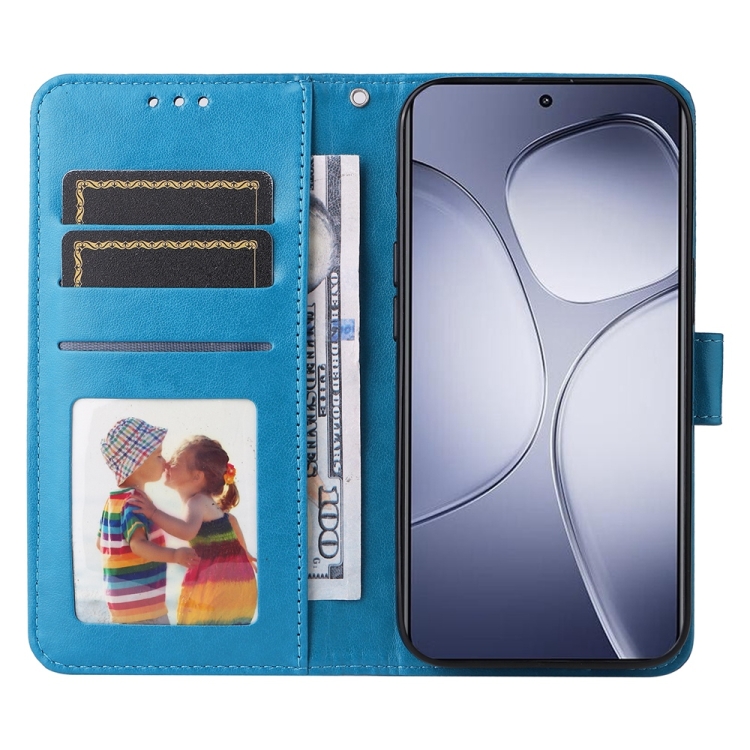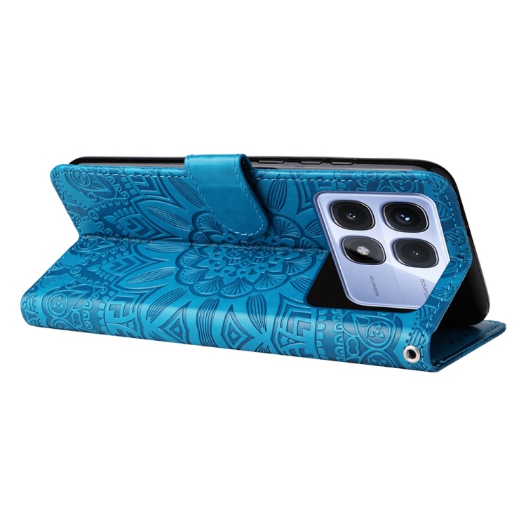 Para Redmi K70 Funda de Teléfono de Cuero con Girasol En Relieve Ultra (Azul)