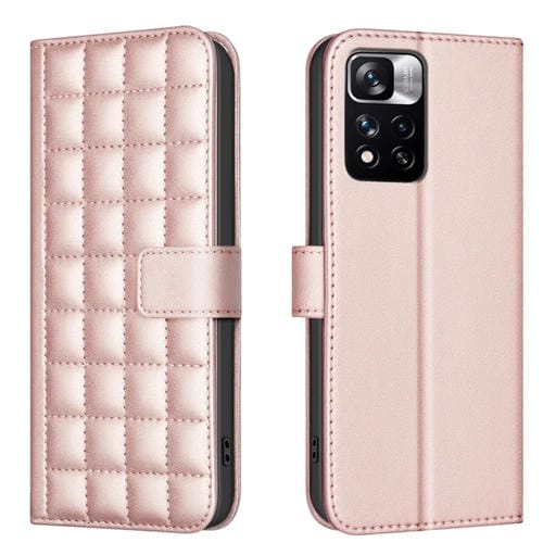 Para Redmi Note 11 Pro 5G / 4G Funda de Cuero para Teléfono con Textura Cuadrada Global (Oro Rosa)