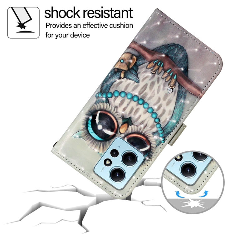 Para Redmi Note 12 4G Global 3D Painting Funda de Cuero con Tapa Horizontal para Teléfono (Búho Gris)