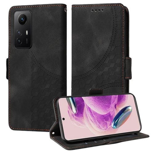 Para Redmi Note 12S 4G Funda de Teléfono de Cuero Estrellado con Rombo En Relieve Global (Negro)