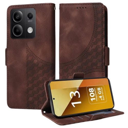 Para Redmi Note 13 5G Funda para Teléfono de Cuero Estrellado con Rombos En Relieve (Marrón)