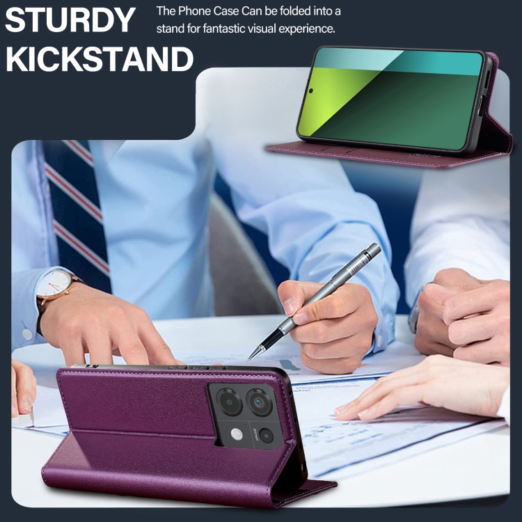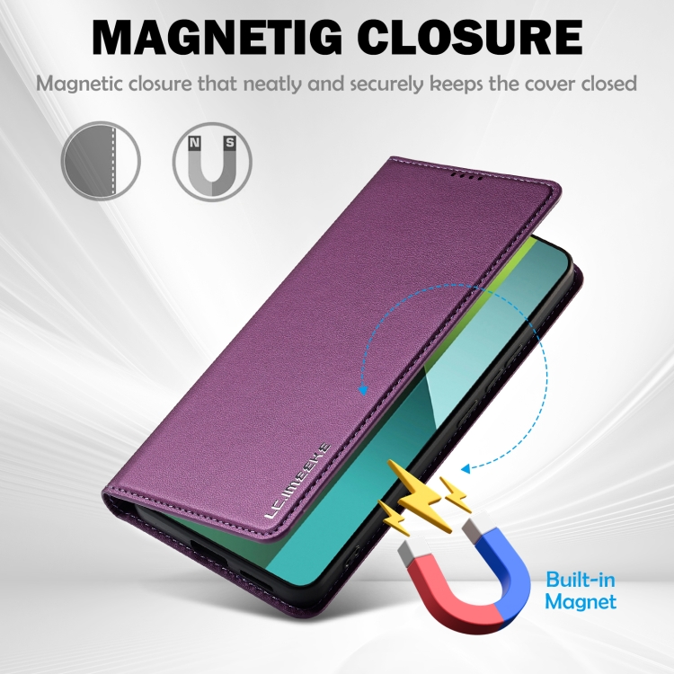 Para Redmi Note 13 Pro 5G Lc.Imeeke L1 Series Estuche para Teléfono de Pu con Textura Fina Esmerilada (Púrpura)