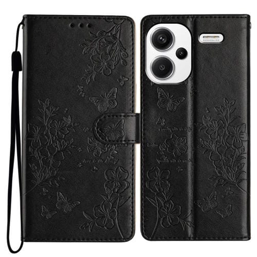 Para Redmi Note 13 Pro+ Funda de Cuero para Teléfono con Mariposas y Flores (Negro)