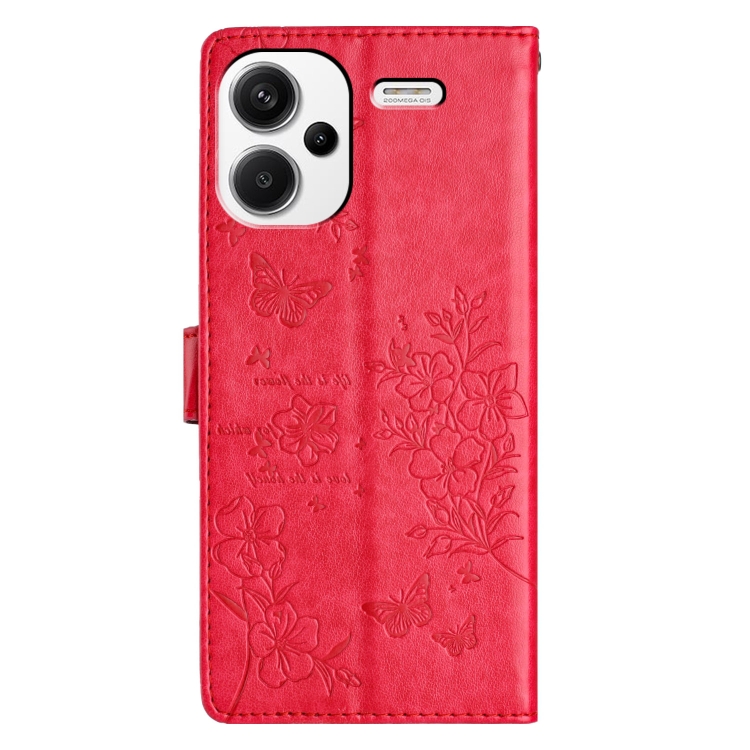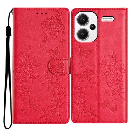 Para Redmi Note 13 Pro+ Funda de Cuero para Teléfono con Mariposas y Flores (Rojo)
