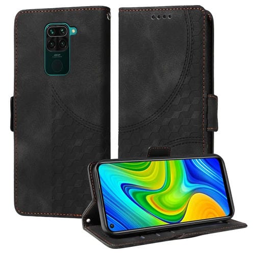 Para Redmi Note 9 4G Funda de Teléfono de Cuero Estrellado con Rombo En Relieve Global (Negro)