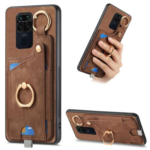 Para Redmi Note 9 Funda para Teléfono con Bolsa para Tarjeta con Anillo y Sensación de Piel Retro con Lazo para Colgar (Marrón)