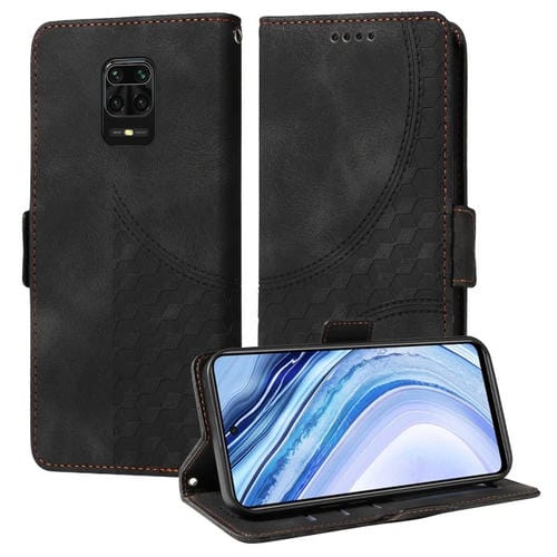 Para Redmi Note 9 Pro 4G Funda para Teléfono de Cuero Estrellado con Rombos En Relieve (Negro)