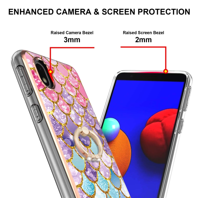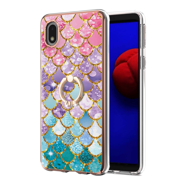 Estuche TPU Samsung Galaxy A01 Patrón Electrochaplating Soporte Anillo (Escamas Coloridas)