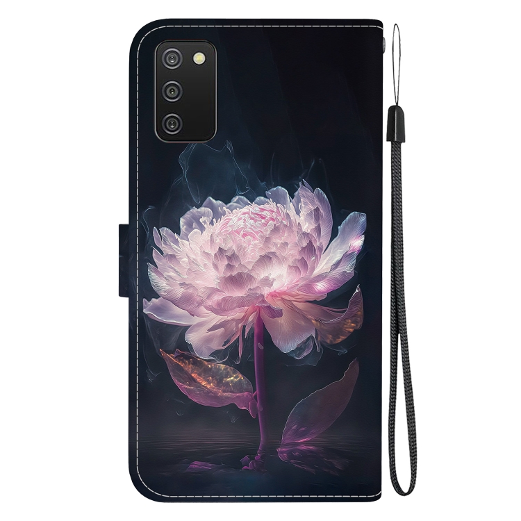 Funda para Teléfono Samsung Galaxy A02S EE.UU Cuero Dibujo Textura Cristal (Peonía Púrpura)