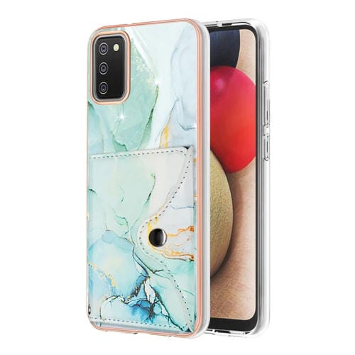 Estuche para Teléfono Samsung Galaxy A02S Versión Estadounidense con Ranura para Tarjeta IMD Patrón Mármol (Verde)