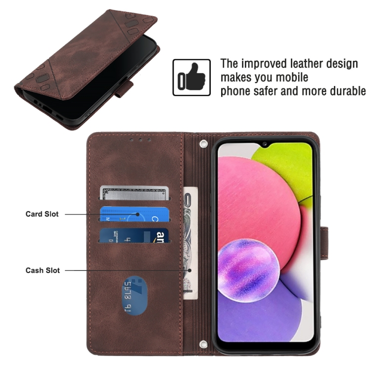 Estuche para Teléfono Samsung Galaxy A03S Cuero En Relieve Tacto de Piel (Marrón)