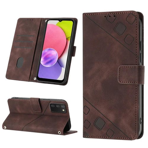 Estuche para Teléfono Samsung Galaxy A03S 166.6mm Cuero En Relieve con Tacto de Piel (Marrón)