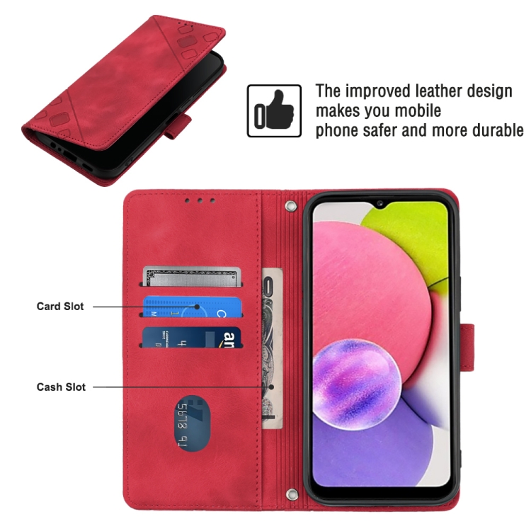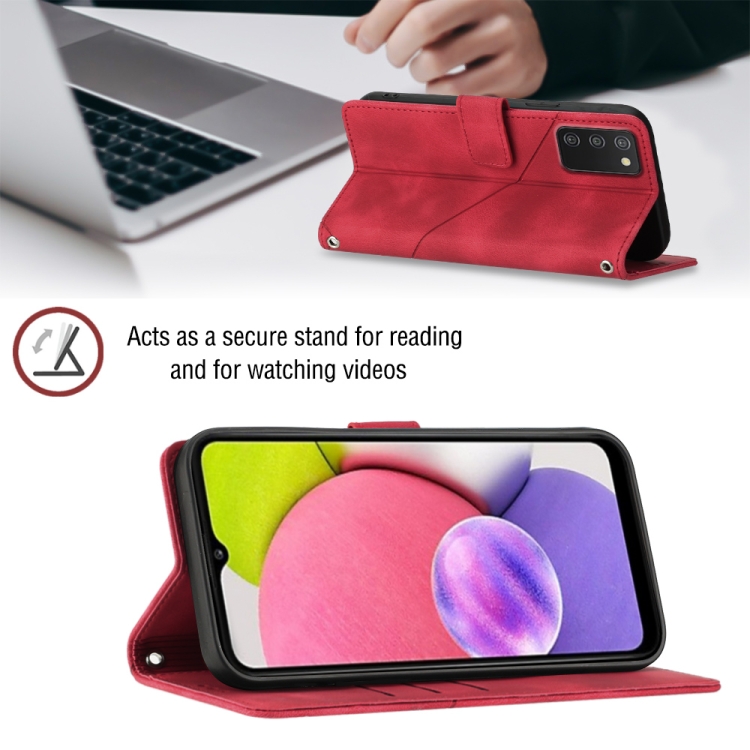 Estuche para Teléfono Samsung Galaxy A03S 166.6mm Cuero En Relieve con Tacto de Piel (Rojo)