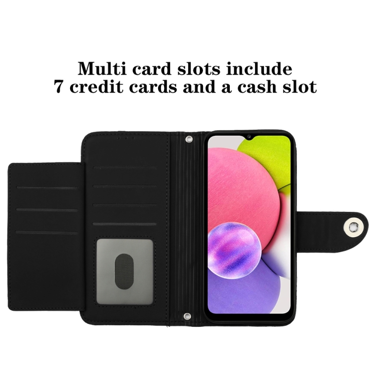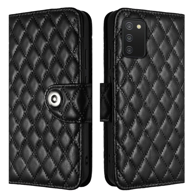 Funda para teléfono Samsung Galaxy A03S con tapa de cuero textura rómbica y cordón (Negro)