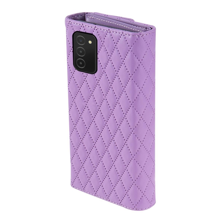 Estuche para teléfono Samsung Galaxy A03S con billetera de múltiples tarjetas con cremallera y cuero rómbico (Púrpura)