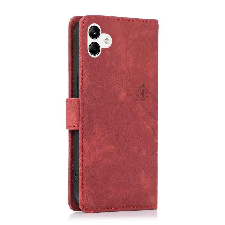 Funda para Teléfono Samsung Galaxy A04 A04S Cuero Relieve Mariposa Orquídea (Rojo)