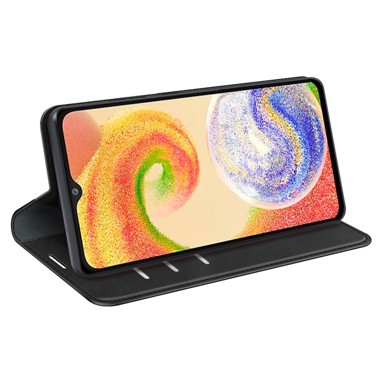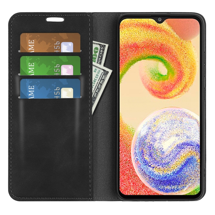 Funda de Teléfono Samsung Galaxy A04 Cuero Succión Magnética Piel Retro (Negro)