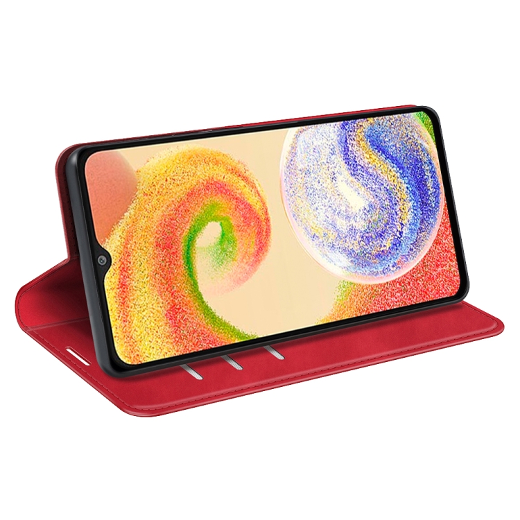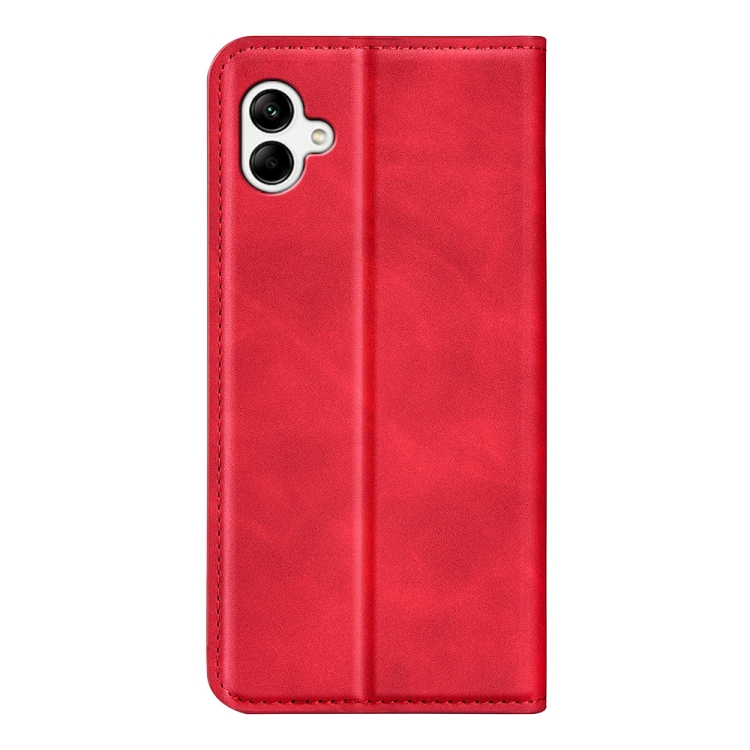 Funda de Teléfono Samsung Galaxy A04 Cuero Succión Magnética Piel Retro (Rojo)